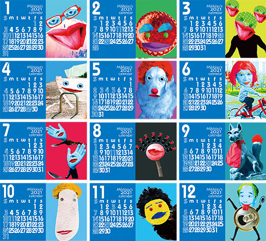 Mikkiouの最近の作品をもとにカレンダー用にアレンジ。2021年をMikkiouと向き合う根性のある人におすすめ。 各月ごとの思いを簡単なコメントで表現。