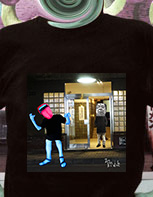 T-シャツの色は黒。サイズはS,M,L,LLとなります。