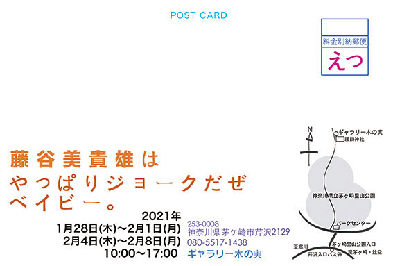 1月28日(木)から2月1日(月)までと2月4日(木)から2月8日(月)まで地元茅ヶ崎の自宅に近い「ギャラリー木の実」で個展BAD2021を開催します。かなりの田舎で銀座みたいに周りに駅が沢山あるような所ではなく、一番近い駅まで歩いて1時間位ですかね。もちろんキリンやシマウマなどが生息していてライオンなどもいます。もちろんこれは冗談ではありません。 さて、ここでやろうと決めたのは去年の1月位でしたか。私のような作品をイキナリやったのではみんなビックラコイちゃうと思いまして。「ギャラリー木の実」に集う人達に慣れてもらうためにカツラを被ったり、数々の資料を見てもらったりして、色々な人とお友達になりました。あの人ならこのくらいの事はやるだろうと。免疫を作りました。 出展作品は今までにどこかで発表したものですが、それなりに感動していただけると思います。 |