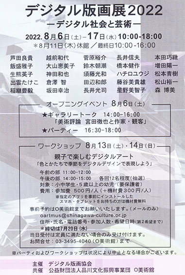 デジタル版画展 2022 自画像だけ 2022年8月6日(土)〜8月17日(水) O美術館にて開催。