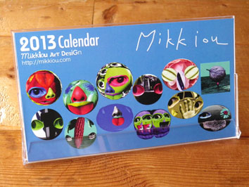Mikkiouの最近の作品をもとにカレンダー用にアレンジ。2013年の1年間をMikkiouと向き合う根性のある人にはおすすめ。各月ごとの思いを簡単なコメントで表現。 2013年もよろしく! |