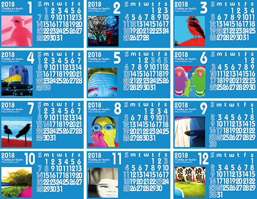 Mikkiouの最近の作品をもとにカレンダー用にアレンジ。2018年をMikkiouと向き合う根性のある人におすすめ。 各月ごとの思いを簡単なコメントで表現。