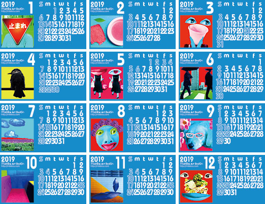 Mikkiouの最近の作品をもとにカレンダー用にアレンジ。2019年をMikkiouと向き合う根性のある人におすすめ。 各月ごとの思いを簡単なコメントで表現。