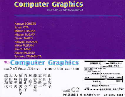 CG 2018 今年で9回目になるComputer Graphics 展に参加。 2018年7月19日(木)より7月24日(火)まで Gallery G2で開催。(下記参照)