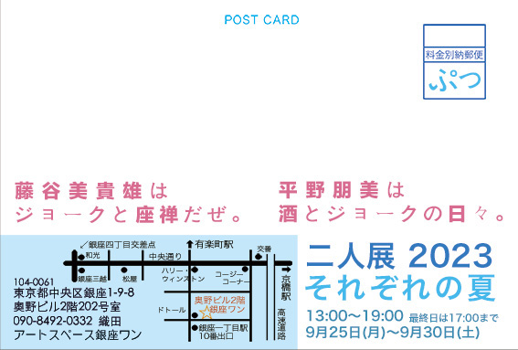 二人展2023 それぞれの夏・ミッキオウ+トモミ 2023年9月25日(月)〜30日(土) 銀座ワンにて開催。