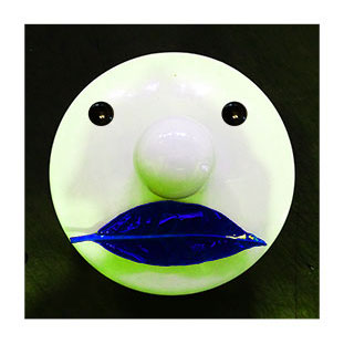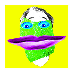 着ぐるみのマスクを脱いでポーズをとる自画像
