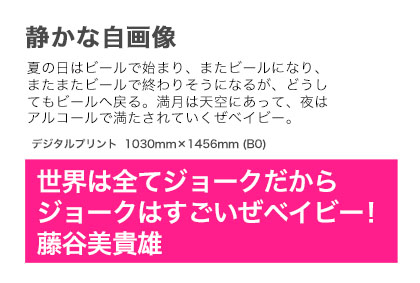僕は自画像が好き。いろいろな所で自分の顔をアレンジしたものを発表している。人に見られてしまうことで自分を確定してしまいたいのか。けれども確定などあり得ない。自分との戦いは永遠に続くのだから。人というものは常に揺らいでいるのだから。