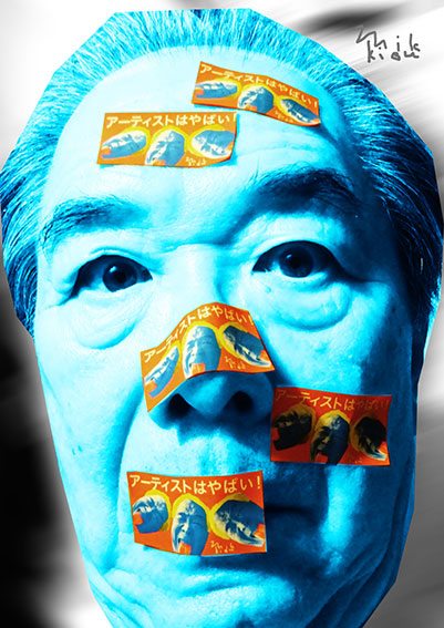 「僕は自画像が好き。いろいろな所で自分の顔をアレンジしたものを発表している。人に見られてしまうことで自分を確定してしまいたいのか。けれども確定などあり得ない。自分との戦いは永遠に続くのだから。人というものは常に揺らいでいるのだから」 前回書いたものだけど今も変わらない。自画像男を名乗ったりしている。今回は青で渋くまとめる。