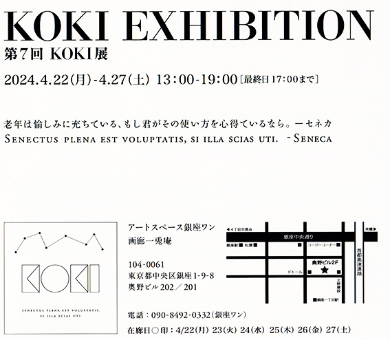 KOKI2024-第7回KOKI展 とにかくエイリアン 2023年4月22日(月)〜4月27日(土) 銀座ワンと一兎庵にて開催。