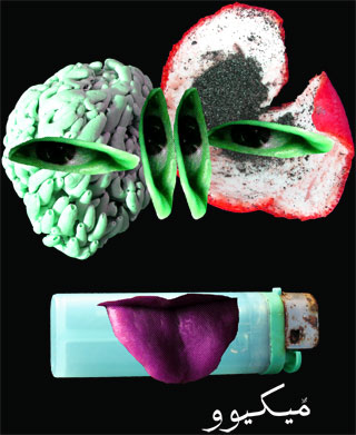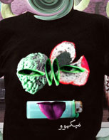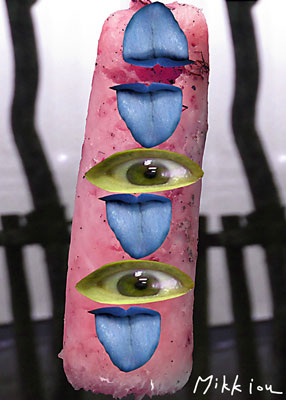 | Mikkiouオリジナルデザイン 2011.3.22-2011.3.29 ------------ 「目と舌について」07 T-シャツの色は黒。サイズはS,M,L,LLとなります。 価格は1枚4,200円(税込)です。 | ![]()