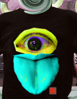 | Mikkiouオリジナルデザイン 2011.3.8-2011.3.15 ------------ 「目と舌について」05 T-シャツの色は黒。サイズはS,M,L,LLとなります。 価格は1枚4,200円(税込)です。 | ![]()
