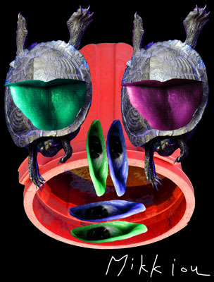 | Mikkiouオリジナルデザイン 2011.4.05-2011.4.15 ------------ 「目と舌について」09 T-シャツの色は黒。サイズはS,M,L,LLとなります。 価格は1枚4,200円(税込)です。 | ![]()