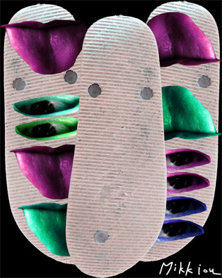 | Mikkiouオリジナルデザイン 2011.2.22-2011.2.28 ------------ 「目と舌について」03 T-シャツの色は黒。サイズはS,M,L,LLとなります。 価格は1枚4,200円(税込)です。 | ![]() ![]() |