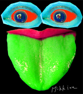 | Mikkiouオリジナルデザイン 2011.4.15-2011.4.22 ------------ 「目と舌について」10 T-シャツの色は黒。サイズはS,M,L,LLとなります。 価格は1枚4,200円(税込)です。 | ![]()