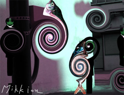 | Mikkiouオリジナルデザイン 2011.7.19-2011.7.26 ------------ 「渦巻の時代」01 T-シャツの色は黒。サイズはS,M,L,LLとなります。 価格は1枚4,200円(税込)です。 | ![]()