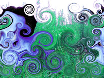 渦巻からラーメンへ、ただ渦巻の魅力が消え去ったわけではない。次々と画面を破壊していく喜びは忘れ難い。それから花模様の塗り込みへ至って、ミキちゃん ベイビーの発見。これは大いなる出来事であった。さて、この不気味で悪魔のようでもあり可愛くもあるベイビーはいかなる運命にあるのだろうか。