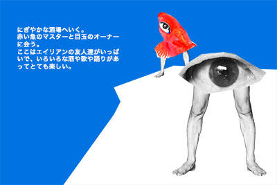 ヒロインAの回想から始まる。銀座のギャラリーで小さなアクセサリーを買い店を出ると閃光とともに第三次世界大戦が勃発。人類は滅びてしまう。奇跡的に生き延びたヒロインAは街をさまよう。「一人、一人さまよえば。行けど切ない〜」昔の歌など口ずさむ。オトヒメとカメに会う。カメは飛ぶことのできないヒロインAを乗せ、オトヒメと荒廃した地球をさまよう。消滅した人類の後は急速にエイリアンの世界になっていくけれど、それは自然なことだと思う。にぎやかな酒場へいく。赤い魚のマスターと目玉のオーナーに会う。ここはエイリアンの友人達がいっぱいで、いろいろな酒や歌や踊りがあってとても楽しい。酒場に来たE17に一目惚れ。ブルーの瞳が五つもあって、唇もブルー、白くて長いトサカも素敵。それにALC.43%で控えめだし。オトヒメの友人で海辺にあるバー・サバドゥビのオーナーだ。今日は走る。海へ行きビーチを走る。赤い魚も青い犬もヒロインAも走る。トレンディなイクラのふんどしで走る。〆はバー・サバドゥビでビールを飲もう。バー・サバドゥビで「物体」と会う。「物体」は生命のような物体であって、人類と異なるのはやろうと思えば何でもできてしまうこと。物体は死なない。死んだふりはできるけど。日々いろいろな出来事があって楽しい。E17と暮らすようになってしばらくすると2世が誕生する。ヒロインAの子はベイビーAとなり、スクスクと育っている。パッキンだぜベイビー。ガキのくせにサバドゥビにやってきて酒は飲むはタバコは吸うはで、全く困ったものだぜベイビー。親達といえばガキの頃はこんなもんだぜベイビーA。などと言っている。ただ歌の才能はあるみたいで、どこで覚えたかオペラのアリアを迫力で歌ったりしているぜベイビーA。夢を見た。第四次世界大戦が地球上の物体を除く全ての生物を滅ぼしてしまう。今や地球は多くのエイリアンが暮らしている。彼らはいろいろな星からやってきて地球を数少ないパラダイスとして認め合い、平和と安定の地としていた。ところが彼らの母星の紛争が持ち込まれ、一瞬のうちに地球は砂漠の地となってしまう。「物体」が好んで飲む「物体酒」についてここで語ろう。黒くてドロドロしたもので液体のように流れる。グラスに入れて「わびさび」あるいは「わぴさぴ」と叫んで飲む。これの不思議なところは、グラスを口に当てると物体酒が自分で口の中に入っていく。うまいマズイはともかく酔い心地がたまらないのだ。とにかく神の領域だ。深淵なる存在である「物体」は百億年前から人類のように記憶や意識を持った一つのまとまりとして生きてきた。その時間の膨大な量のデータがあり、それがどのようなシステムで機能しているのかはわからないが、スーパーマンなのだ。ヒロインAの夢のようなことが起こる可能性はあるが、それを止めることは物体達の力を以ってしてもできない。けれども、ここに登場してきた仲間たちの活躍で地球を守ることができるのか。「物体」とカメは物体酒を飲みながら語り合うのであった。今日は「物体」をはじめヒロインAやオトヒメ、カメがサバドゥビに集まりパーティをやる。「愛マン」がやって来るという。ハートの形をしたピンク星雲に住む「愛パワー」を持つ一族だった。しかし色々あって今では宇宙を放浪していると聞く。やはりここは月並みではあるけれど愛の出番であると思う。